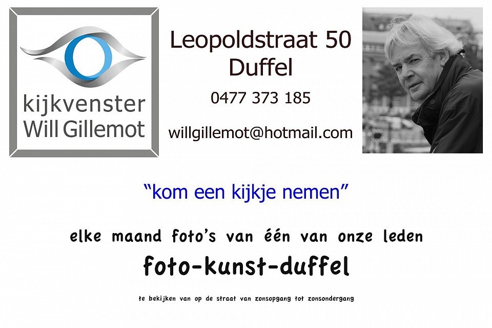 elke dag van op de straat vrijblijvend te bekijken, foto's van de leden van foto-kunst-duffel
